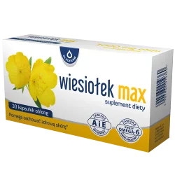 Olej z wiesiołka również zawiera kwasy omega-6: kwas linolowy (LA) i kwas gamma-linolenowy (GLA). Wiesiołek wspiera układ odpornościowy i układ krążenia, wspomaga obniżanie cholesterolu i oczyszczanie organizmu, łagodzi bóle reumatyczne i przyspiesza proces gojenia się ran. Do wyboru są kapsułki z olejem z wiesiołka lub wiesiołek w szklanej butelce.