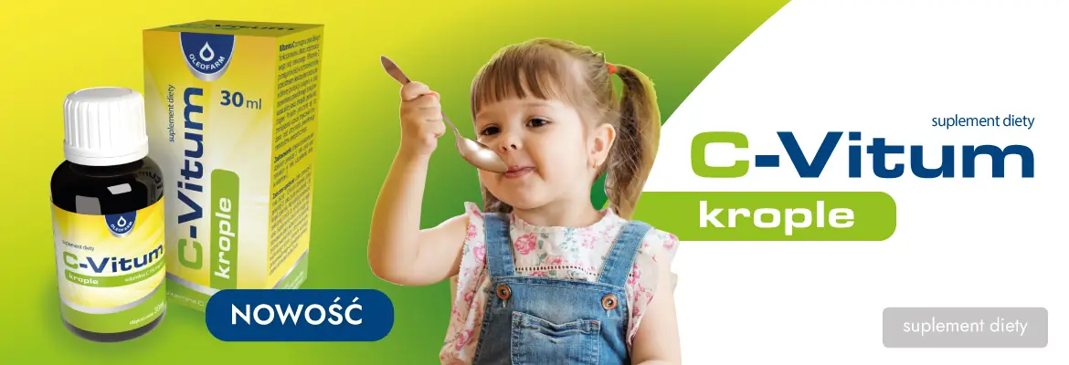 C-Vitum krople to suplement diety zawierający witaminę C w wygodnej formie kropli dla dzieci od 3. roku życia i dorosłych. Witamina C pomaga w prawidłowym funkcjonowaniu układu odpornościowego oraz nerwowego. Pomaga również w ochronie komórek przed stresem oksydacyjnym oraz w prawidłowej produkcji kolagenu w celu zapewnienia prawidłowego funkcjonowania skóry, kości, chrząstki, zębów oraz dziąseł. Ponadto, przyczynia się do zmniejszenia uczucia zmęczenia i znużenia oraz utrzymania prawidłowego metabolizmu energetycznego.