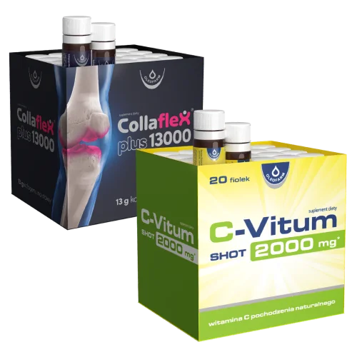 - Zestaw zawiera 20 fiolek Collaflex PLUS 13.000 + 20 x C-Vitum 2000mg SHOT,